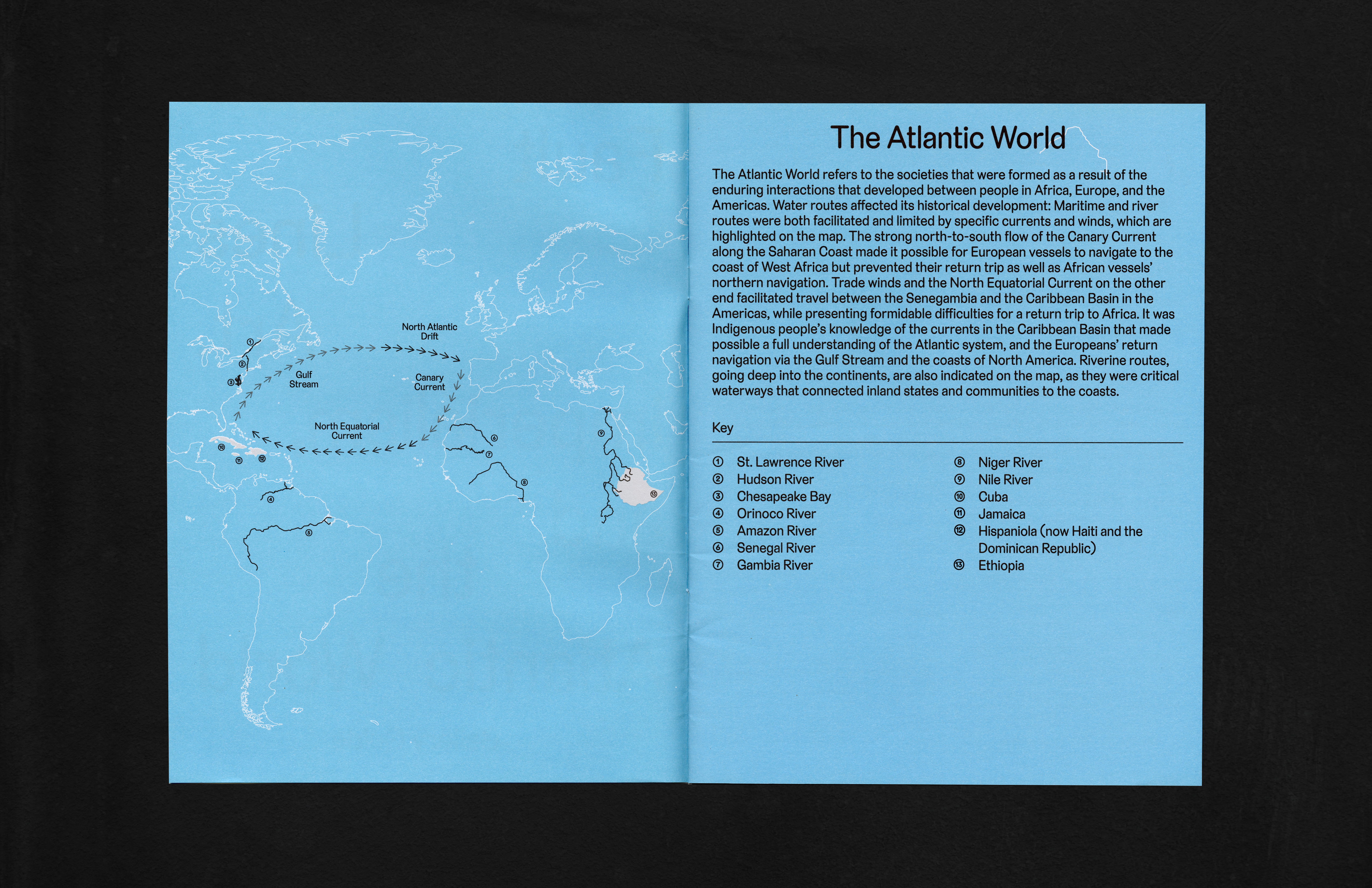 For Fault Lines, I drew from the exhibition’s focus on the entangled histories of the Atlantic World. I used river forms on the gallery guide and wall text to signify both natural boundaries and conceptual “faults” between European and Caribbean worldviews. This visual language echoes the exhibition’s exploration of art, empire, and the ruptures within cultural exchange.