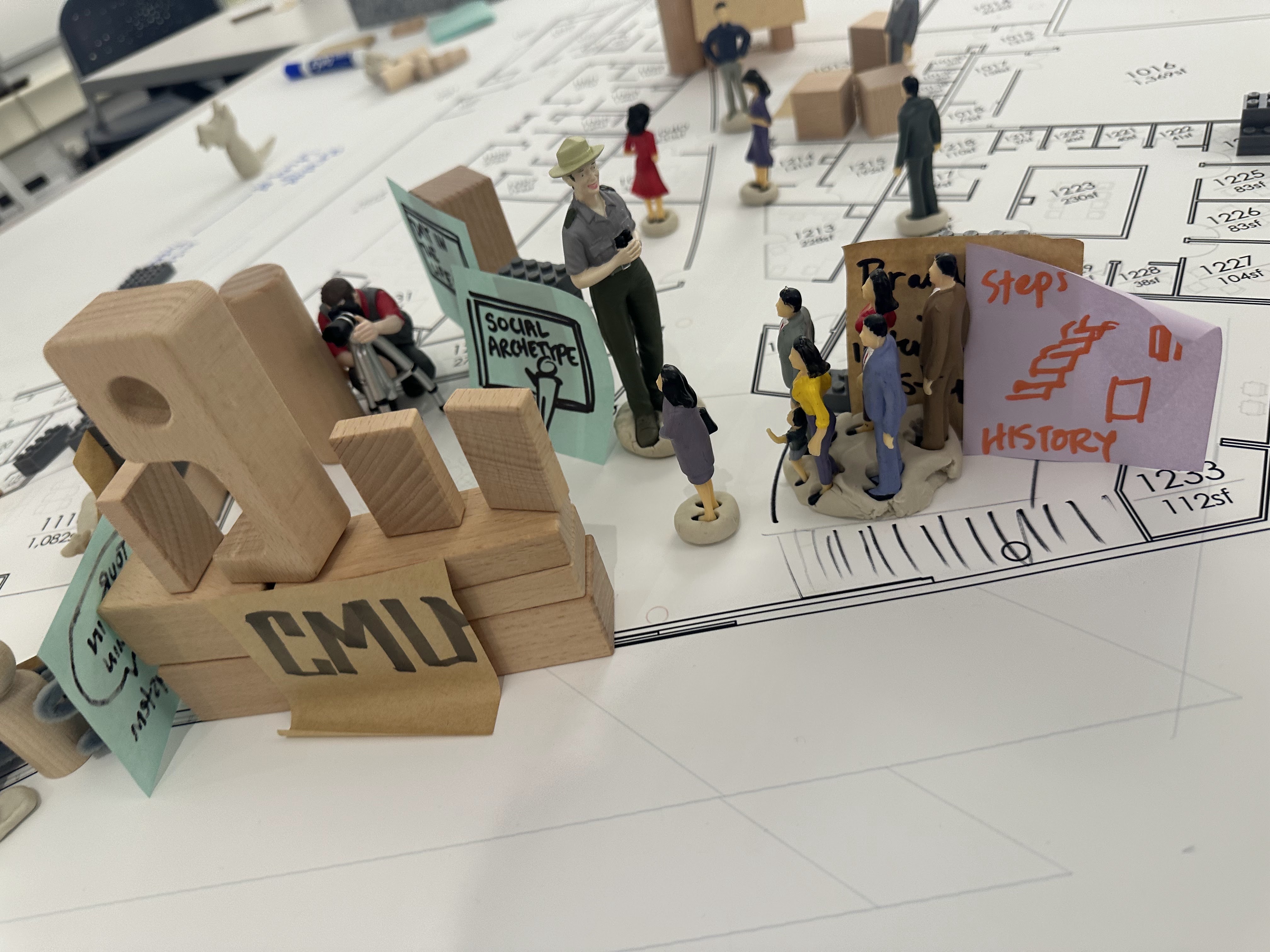 Through research and workshops, we found the space afforded much more effective opportunities for prospective and current student engagement and fostering general feelings of welcoming. This project enabled us to merge diverse expertise in environmental graphic design, interaction design, service design, industrial design, and architecture to strategically improve aspects of the campus experience and to develop principles of belonging and storytelling which can be applied across many areas and programs at CMU.